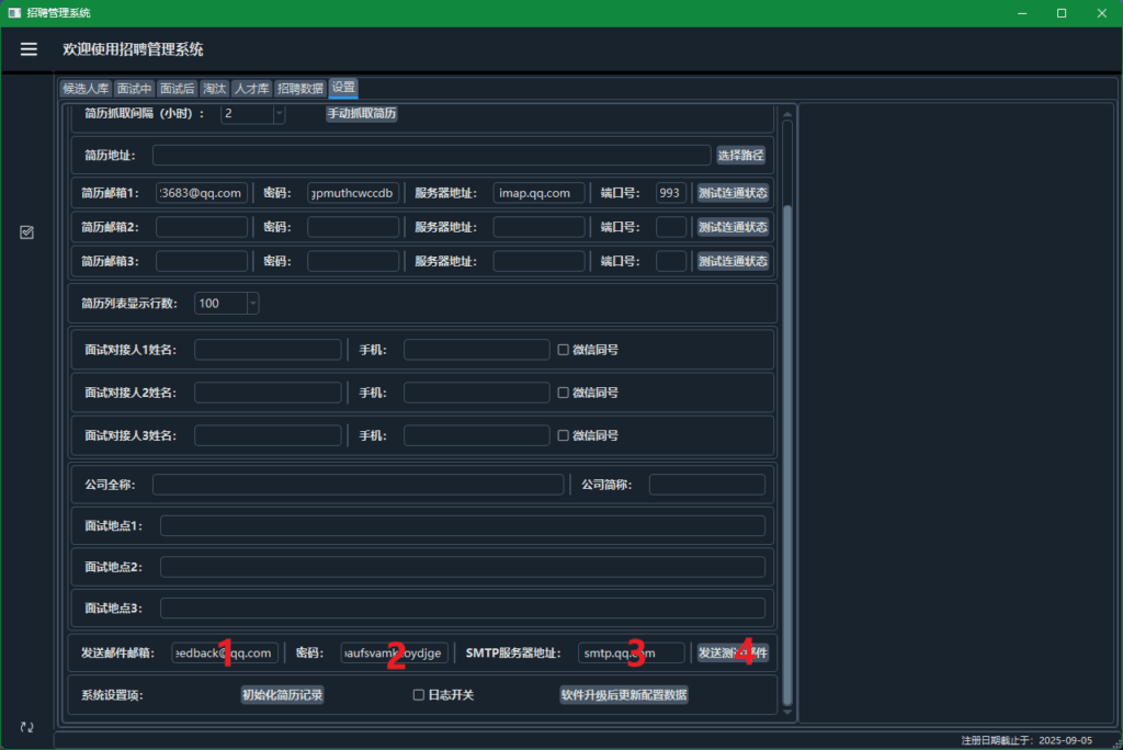 设置一个发送邮件邮箱,用于发送通知邮件、简历推荐邮件、给到面试官和候选人的面试安排邮件,系统已设置好对应的邮件模板;