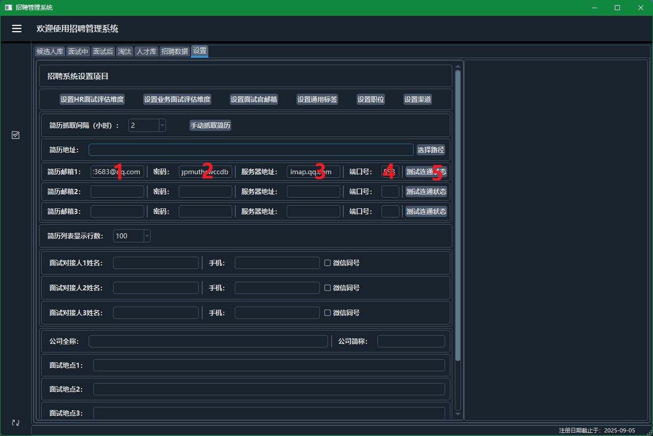 可同时设置3个接收简历的邮箱,每次抓取简历会依次抓取已正确配置的邮箱中的简历;